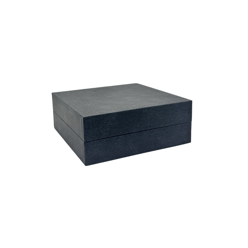 Luxury box with integrated multi-function sheath, for pendant, chain, baby ID, polymer shell covered with soft touch paper and matt leather look. Interior and insert covered with high-density suede. This case can be customised in hot foil stamping.