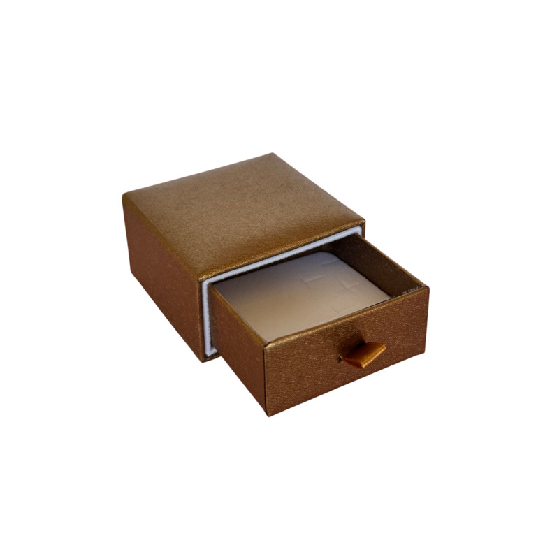 Cardboard box with sliding drawer, pencil box design with satin grip ribbon. Textured paper coating with iridescent effect. Inside the case covered with iridescent effect paper, high quality velvet insert. This case can be customised with hot foil stamping or pad printing.