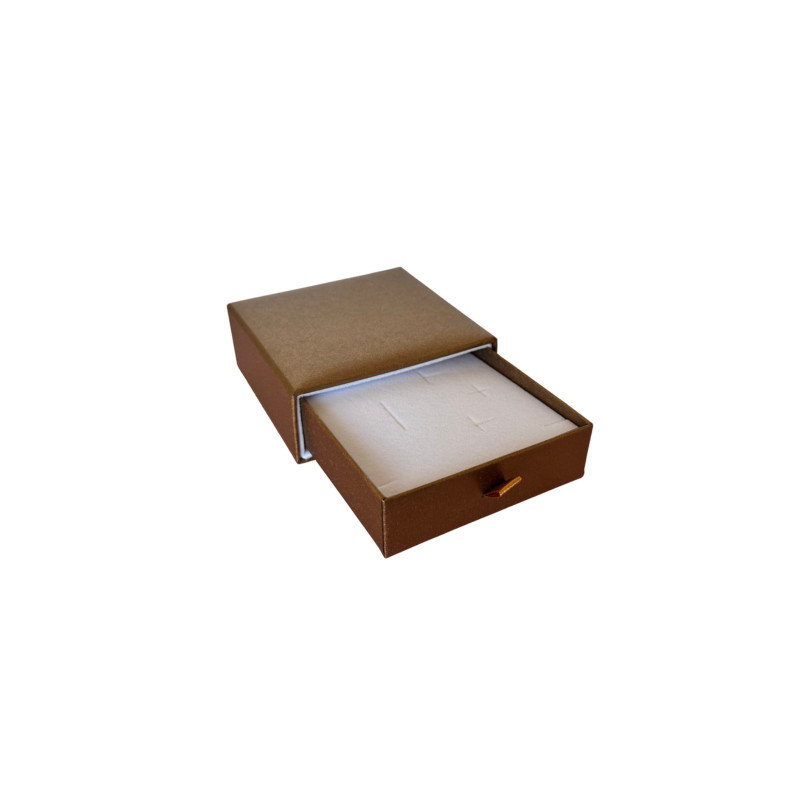 Cardboard box with sliding drawer, pencil box design with satin grip ribbon. Textured paper coating with iridescent effect. Inside the case covered with iridescent effect paper, high quality velvet insert. This case can be customised with hot foil stamping or pad printing.
