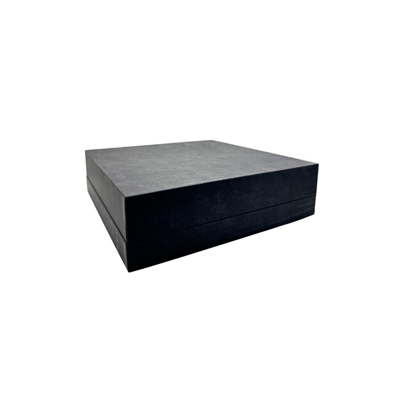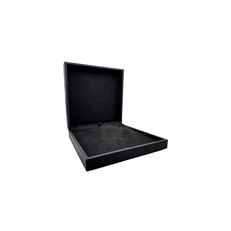 Ecrin luxe avec fourreau intégré pour collier, coque polymère recouvert de papier soft touch aspect cuir mat. Intérieur et insert habillés d'une suédine haute densité. Cet écrin est personnalisable en dorure à chaud.